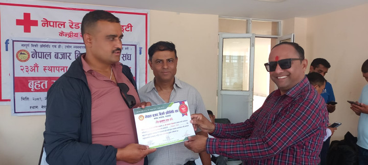 नेपाल बजार बिक्री प्रतिनिधि संघको स्थापना दिवसको अबसरमा राजधानीमा रक्तदान कार्यक्रम