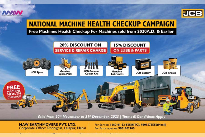 जेसीबी नेपालले ल्यायो देशव्यापी ‘नेशनल मेसिन हेल्थ चेकअप क्याम्पेन’ : पुराना मेसिनलाई निःशुल्क स्वास्थ्य जाँच....